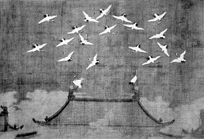 宋徽宗赵佶的《瑞鹤图》难得一见(局部)